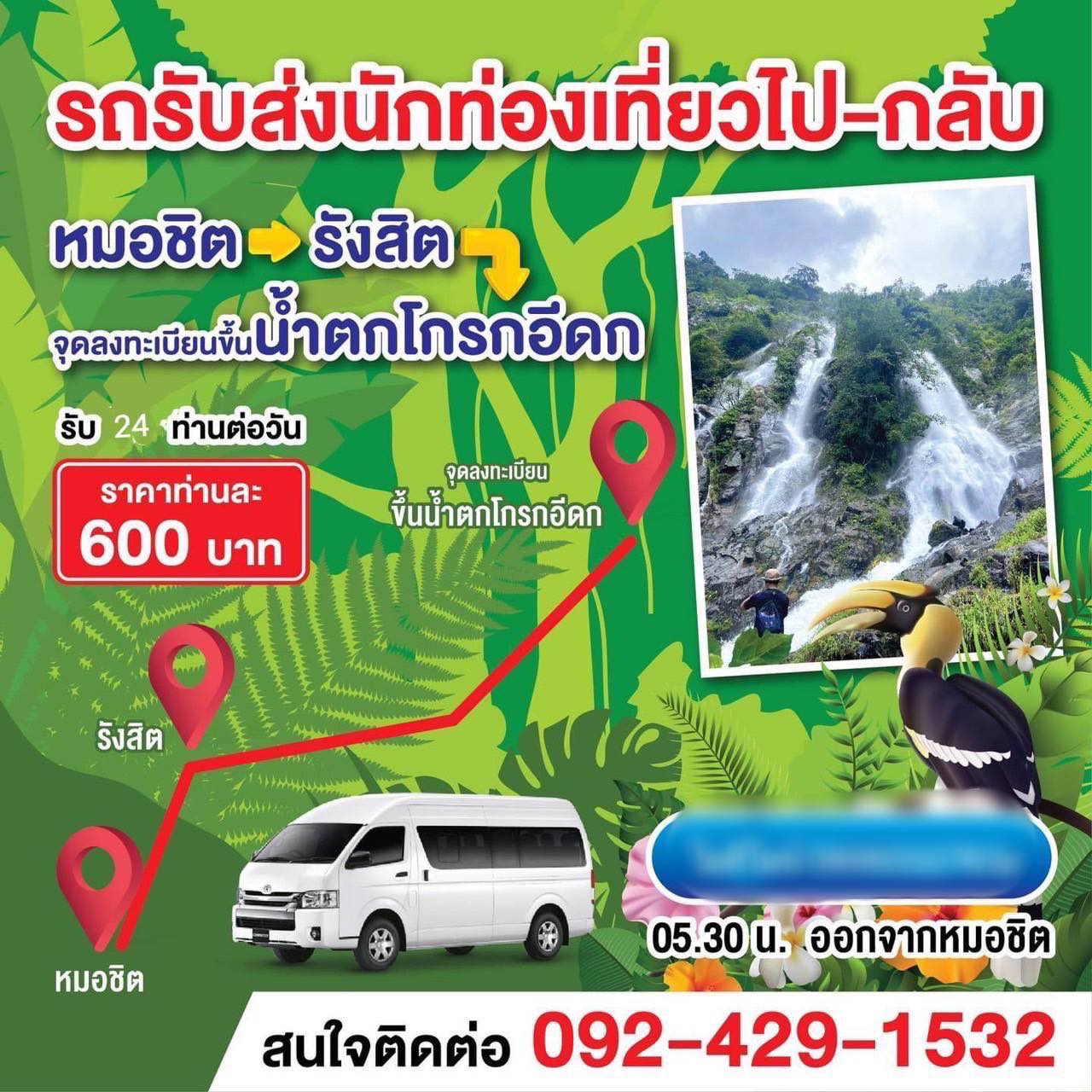 รถตู้บริการรับส่งสุดคุ้ม! จาก หมอชิต ผ่าน รังสิต ไปจนถึง จุดลงทะเบียนขึ้นน้ำตกโกรกอีดก พร้อมรับ-ส่งแบบไป-กลับในราคาสุดพิเศษเพียง 600 บาท/คน เท่านั้น! เพลิดเพลินกับการเดินทางสะดวกสบายในบรรยากาศธรรมชาติสุดสดชื่น เหมาะสำหรับสายผจญภัยที่ต้องการหลีกหนีจากความวุ่นวายในเมือง มุ่งหน้าไปสัมผัสความงดงามของ น้ำตกโกรกอีดก น้ำตกชื่อดังที่ซ่อนตัวอยู่ในป่าธรรมชาติ พร้อมให้คุณได้เต็มอิ่มกับประสบการณ์ที่หาที่ไหนไม่ได้! สิ่งที่คุณจะได้รับ: บริการรถตู้รับส่ง ไป-กลับ เส้นทาง หมอชิต – รังสิต – จุดลงทะเบียนน้ำตกโกรกอีดก รับจำนวนจำกัดเพียงวันละ 24 ท่าน เท่านั้น เพื่อความสะดวกสบาย ออกเดินทางทุกเช้าตอน 05:30 น. จากหมอชิต ราคาเพียง 600 บาท/คน (ไม่รวมค่าลงทะเบียนขึ้นน้ำตก 300 บาท) สำรองที่นั่งหรือสอบถามเพิ่มเติม: โทร 0924291532 แล้วมาสัมผัสการผจญภัยธรรมชาติสุดพิเศษไปด้วยกัน! หมายเหตุ: ค่าลงทะเบียนเข้าชมน้ำตกโกรกอีดก จ่ายเพิ่มหน้างาน 300 บาท/คน สามารถแอดไลน์สอบถามรายละเอียด หรือจองรถตู้ ผ่าน Qr Code ด้านล่างนี้เลย