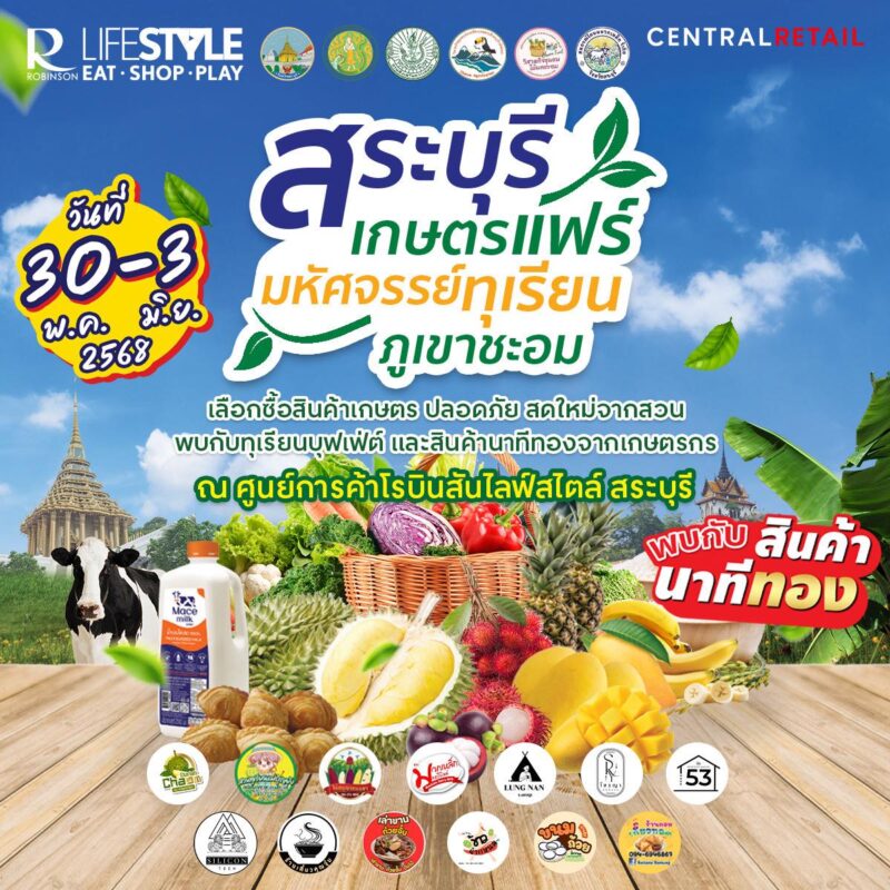งานจัดตั้งแต่วันที่ 30 พฤษภาคม - 3 มิถุนายน 68 ณ ศูนย์การค้าโรบินสันไลฟ์สไตล์ สระบุรี (หน้าอาคาร)