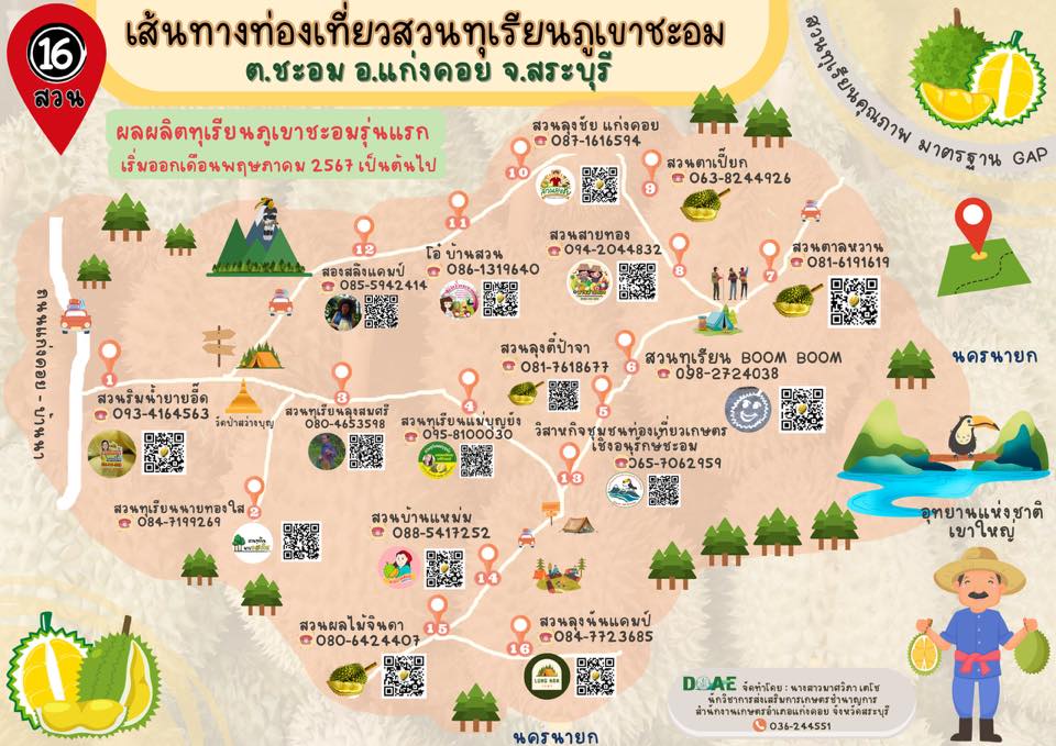 🌳 สวนผลไม้ชะอม: สัมผัสธรรมชาติ พร้อมเลือกซื้อผลไม้คุณภาพจากชาวสวนโดยตรง 🌳ขอต้อนรับสู่สวนผลไม้ชะอมสถานที่ที่คุณและครอบครัวจะได้สัมผัสธรรมชาติท่ามกลางบรรยากาศสดชื่นของสวนผลไม้ที่ตั้งอยู่ในอำเภอแก่งคอย จังหวัดสระบุรี พร้อมลิ้มรสผลไม้สดใหม่จากต้น และเลือกซื้อผลไม้คุณภาพกลับบ้านไปฝากคนที่คุณรัก ทุเรียนภูเขาเขาชะอม: เอกลักษณ์ที่ไม่เหมือนใคร ✨หนึ่งในไฮไลต์ของสวนผลไม้ชะอมคือ ทุเรียนภูเขาเขาชะอม ซึ่งได้รับการปลูกและดูแลจากชาวสวนผู้เชี่ยวชาญอย่างพิถีพิถัน จุดเด่นที่ทำให้ทุเรียนของเราพิเศษมีดังนี้:เนื้อแห้ง หวานมัน กลมกล่อม: รสชาติที่พอดีสำหรับคนรักทุเรียนปลอดภัยและไร้สารเร่งสุก: ทุเรียนของเราถูกตัดในช่วงที่สุกแก่ตามธรรมชาติ (90%) เพื่อรักษาคุณภาพสูงสุดกลิ่นหอมละมุน: แม้แต่คนที่ไม่ชอบทุเรียนก็สามารถรับประทานได้ผ่านการรับรองมาตรฐาน GAP: มั่นใจได้ในความปลอดภัยและกระบวนการปลูกที่เป็นมิตรกับสิ่งแวดล้อม มากกว่าการชิมผลไม้: ประสบการณ์ที่คุณจะประทับใจ 🌱💚 สนับสนุนเกษตรกรไทยเมื่อคุณเลือกซื้อผลไม้จากสวนผลไม้ชะอม คุณกำลังช่วยส่งเสริมรายได้และสนับสนุนการเกษตรกรรมไทยในชุมชน พร้อมทั้งสร้างแรงบันดาลใจให้ชาวสวนพัฒนาผลผลิตอย่างยั่งยืน💚 เรียนรู้วิถีเกษตรจากต้นน้ำถึงปลายน้ำนักท่องเที่ยวสามารถเยี่ยมชมสวนผลไม้พร้อมเรียนรู้กระบวนการดูแลและเก็บเกี่ยวผลไม้โดยตรงจากเกษตรกรในพื้นที่ ทีมงานของเรายินดีให้คำแนะนำและข้อมูลแบบเป็นกันเอง💚 การันตีคุณภาพเรามุ่งมั่นที่จะมอบผลผลิตที่ดีที่สุดให้แก่ลูกค้า หากพบปัญหาเกี่ยวกับคุณภาพผลไม้ ทางสวนยินดีดูแลและรับผิดชอบในทันที ที่ตั้งและการเดินทาง 📍สวนผลไม้ชะอม ตั้งอยู่ในอำเภอแก่งคอย จังหวัดสระบุรี ท่ามกลางภูเขาและธรรมชาติที่งดงาม การเดินทางสะดวกสบาย และบรรยากาศเหมาะสำหรับการพักผ่อนและท่องเที่ยวเชิงเกษตร สวนบ้านแหม่ม 0885417252 พิกัดสวนคลิ๊กเลย สวนลุงชัย 0871616594 พิกัดสวนคลิ๊กเลย โอ๋บ้านสวน 0861319640 พิกัดสวนคลิ๊กเลย สวนลุงตี๋ป้าจา 0817618677 พิกัดสวนคลิ๊กเลย สวนทุเรียน Boom Boom 0982724038 พิกัดสวนคลิ๊กเลย สวนลุงนันแคมป์ 0847723685 เพจ LUNG NAN CAMP สองสลึงแคมป์ 0855942414 พิกัดสวนคลิ๊กเลย สวนทุเรียนลุงสมศรี 0884409959 พิกัดสวนคลิ๊กเลย สวนผลไม้จินดา 0806424407 พิกัดสวนคลิ๊กเลย สวนตาลหวาน 0816191619 พิกัดสวนคลิ๊กเลย สวนสายทอง 0942044832 พิกัดสวนคลิ๊กเลย สวนริมน้ำยายอี๊ด 0934164563 พิกัดสวนคลิ๊กเลย สวนทุเรียนนายทองใส 0926164974 พิกัดสวนคลิ๊กเลย สวนทุเรียนแม่บุญยัง 0958100030 พิกัดสวนคลิ๊กเลย